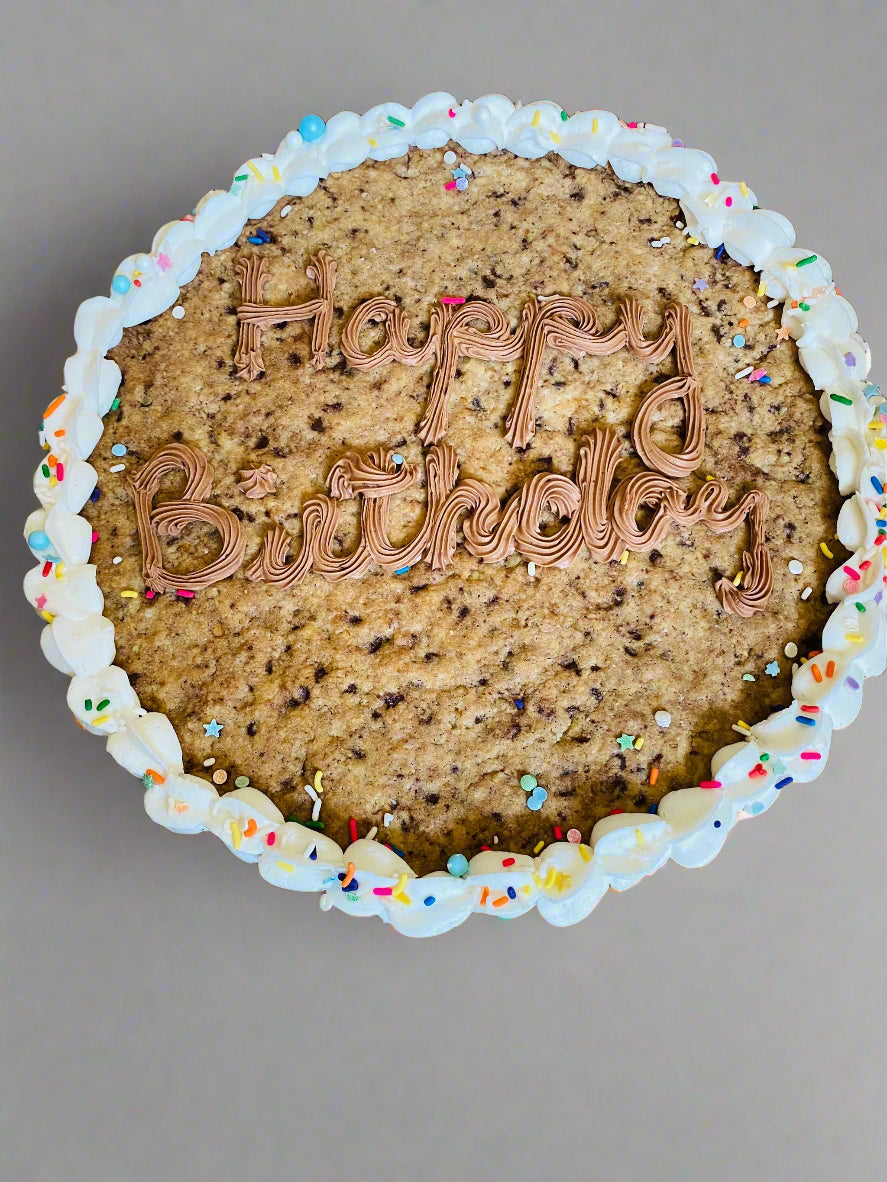We offer our chocolate chip cookie cakes in a variety of allergy-safe options.